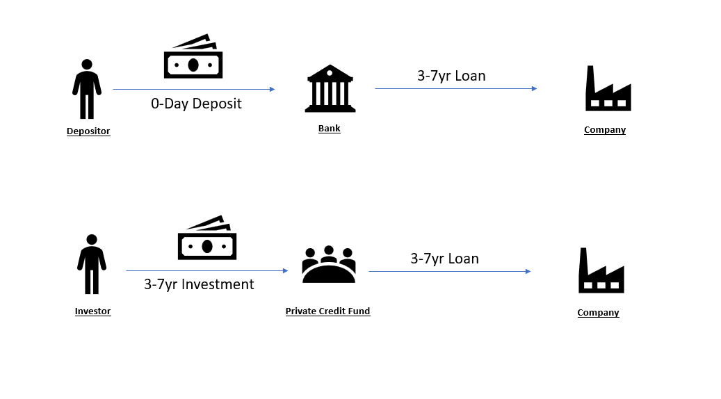 What I described are a few foundational differences between the banking and private credit business models from the perspective of the capital contributors (depositors at banks and LPs at PC funds). Boil it down further and you realize that banks have an asset-liability mismatch.