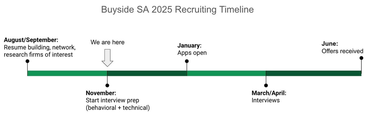 SA 2025: January 1st is less than 2 months away. It is time to start preparing for interviews (both behavioral and technical questions). We recommend prepping for behaviorals before technicals. Our advice is to have 5 relevant stories ready to go to answer any behavioral question. Reference our Premium Database for a suite of all the resources necessary to prepare for an interview.