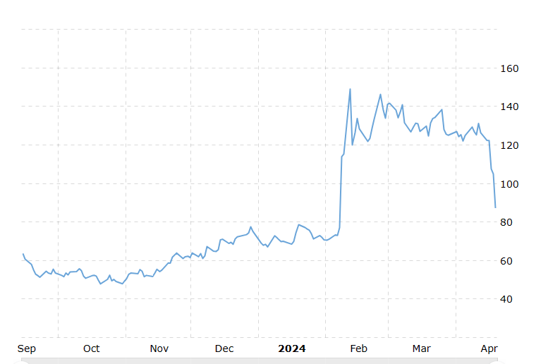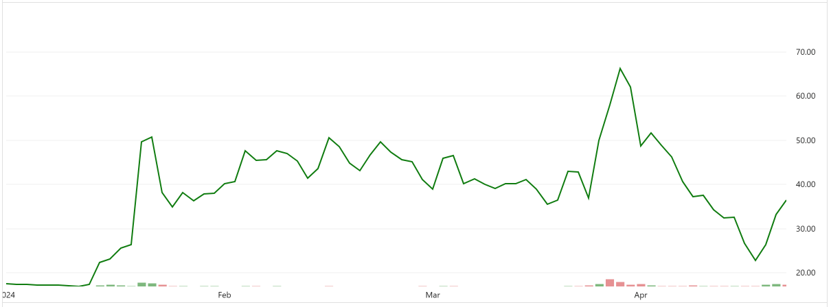 Donald Trump’s social media platform, Truth Social, went public via a SPAC (HH #10 (beehiiv.com) on March 26th, 2024. At the time, it traded around $70 and has since dropped to ~$35.