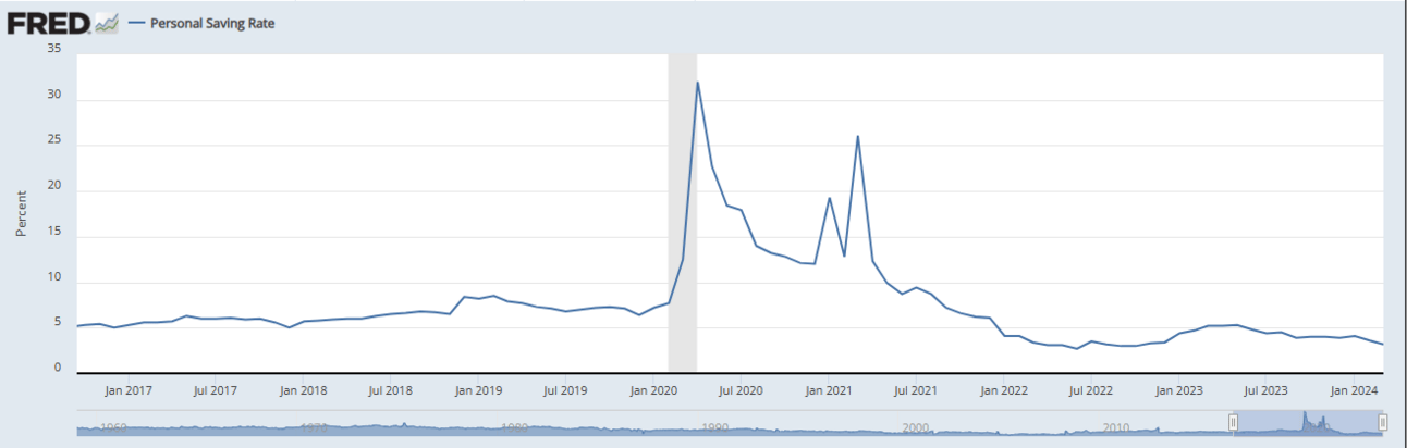 Consumer savings rate is low at 3.2% ("The Pulse" --#20)