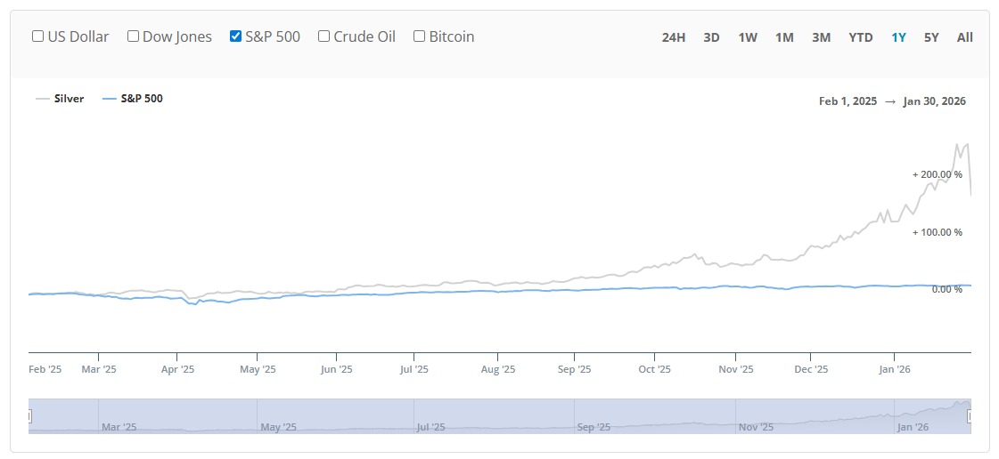 Silver vs. S&P 1-yr Return (Source: APMEX)