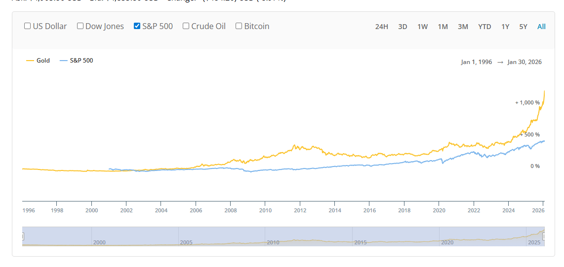 At the end of the day, there are no cash flows, management team, or forecasts to buy into for gold vs. an actual company. So, it becomes difficult for investors to even try lying to themselves about why purchasing more gold today makes sense. Very different backdrop vs. something like the S&P 500 where you can say, “You know what, this AI shit might be the real deal. Buying at 30x P/E might not be that fucked if businesses do become more efficient.”