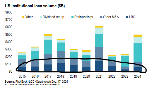 This will largely be rates driven, but LBO deal volume is expected to improve on behalf of lower base rates in 2025.