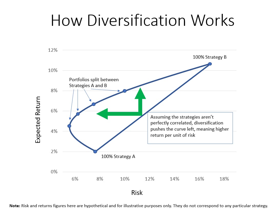 With diversification, you can optimize your risk / return profile. It’s incredible and probably the second-best financial wonder behind compound interest.