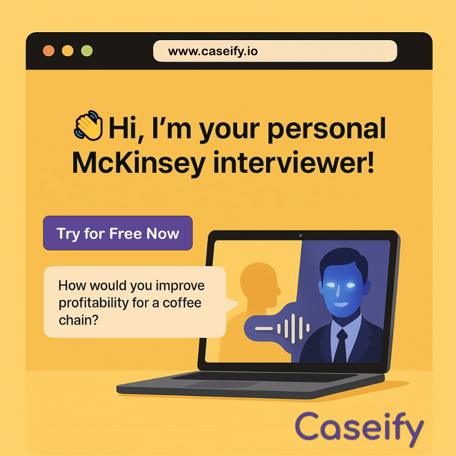Secure your dream MBB offer with Caseify.io, the first-ever AI platform offering fully conversational mock case interviews.
