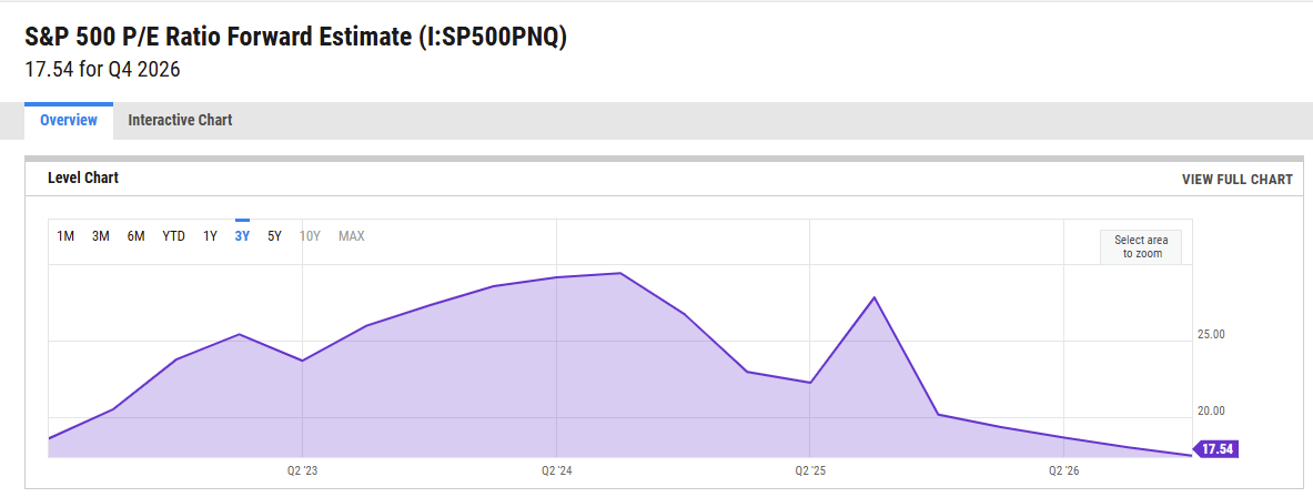 S&P 500 Forward PE Cut in Half (Source: Y Charts)